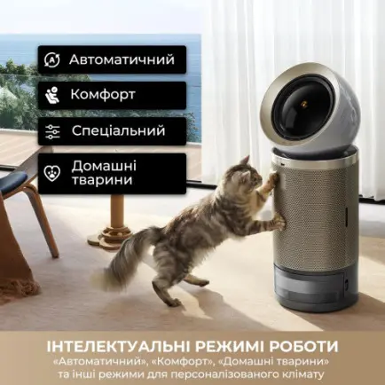 Легко перемикайте декілька режимів відповідно до власних потреб. Вибирайте режими «Автоматичний», «Комфорт», «Домашні тварини» та інші, щоб адаптувати швидкість подачі повітря та яскравість до ваших побажань. Режим Pet ідеально підходить для помешкань із домашніми тваринами: найпотужніший потік повітря ефективно усуває шерсть і запахи домашніх тварин.