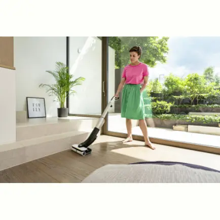 Обертання ролика та кількість води регулюються залежно від типу бруду та підлоги. Підходить для всіх твердих підлог, включаючи паркет, ламінат, камінь та керамічну плитку, ПВХ та вініл. Низька залишкова вологість означає, що по підлозі можна знову ходити через 2 хвилини.