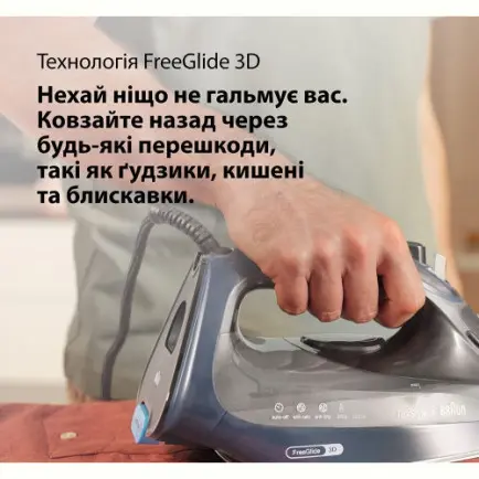 Ще однією важливою особливістю праски Braun SI 9682 DB є ідеально легке ковзання по тканинах будь-якого типу. Підошва Eloxal Plus 3D FreeGlide вирізняється унікальними властивостями: вона дає змогу розгладжувати речі однаково ефективно рухами в будь-який бік. Спеціальна форма підошви дає змогу вільно прасувати речі навіть у проблемних місцях, не зачіпаючи ґудзики та блискавки. Підошва міцна і добре протистоїть виникненню дрібних подряпин, підтримуючи високу якість ковзання навіть з часом.