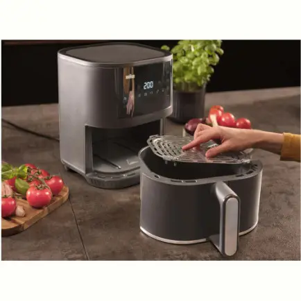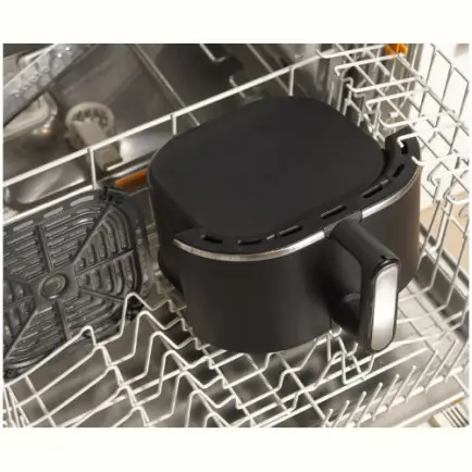 Маленький та малогабаритний дизайн. Розроблена для того, щоб займати мінімум простору, що робить його ідеальним для маленької кухні. Висувна чаша об'ємом 4,3 л забезпечує достатню ємність для приготування різноманітних закусок, гарнірів та повноцінних страв, наприклад 1,2 кг курки або 1 кг замороженої картоплі фрі.
