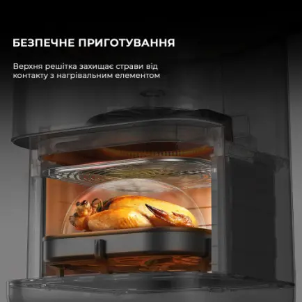 Верхня решітка в MOVA FD10 Pro підвищує безпеку, запобігаючи прямому контакту між їжею та нагрівальним елементом. Така конструкція знижує такі ризики, як пересмажування та розбризкування масла на нагрівальному елементі, сприяючи безпечнішому процесу приготування.