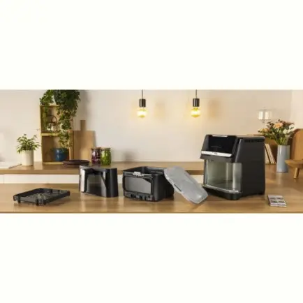 Безліч можливостей під рукою: сенсорне керування, ручний режим з регулюванням температури (від 40°C до 220°C) та 10 автоматичних програм: картопля фрі, нагетси, бекон, креветки, запечена курка, піца, стейки, овочі, риба та десерт.