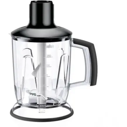 Комплектация | моторный блок, металлическая блендерная ножка с ножами из нержавеющей стали, измельчитель насадка на 1.25 л с дополнительным ножом для колки льда, насадка измельчитель на 350 мл, венчик для взбивания и перемешивания, мерный стаканчик со шкалой на 600 мл |