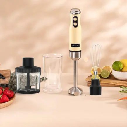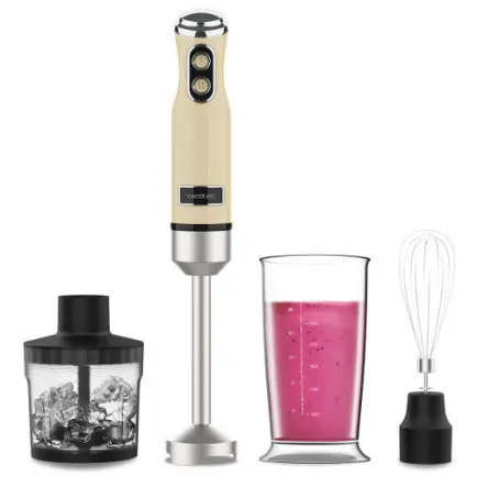 Комбінуйте використання блендера Cecotec, отримуйте найкращі креми та текстури завдяки досить великому набору аксесуарів у комплекті. Склянка, віночок та подрібнювач забезпечує максимальну зручність та практичність на Вашій кухні.