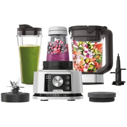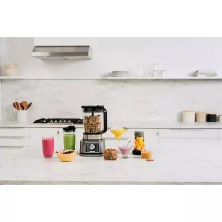 | Комплектация | чаша объемом 2100 мл, чаша объемом 700 мл, чаша объемом 400 мл, крышка, лезвия для дробления и измельчения, лезвие для теста, крышка с носиком, крышка для хранения, гибридные лезвия, щетка. |