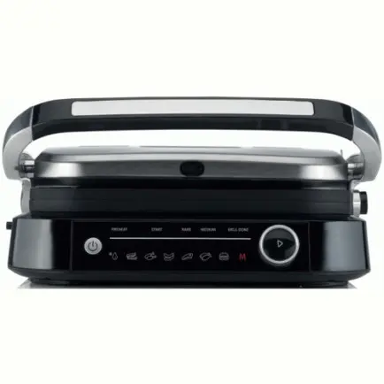 Контактний гриль можна відрегулювати відповідно до товщини їжі, що на ньому готується. Крім того, верхню пластину гриля можна повністю відкинути назад, створивши другу поверхню для смаження на зразок відкритого гриля.