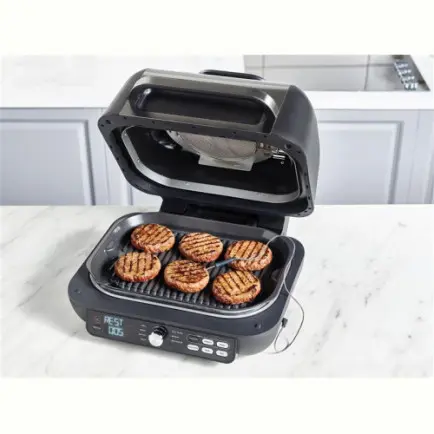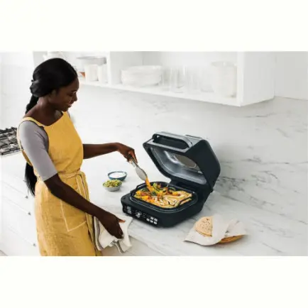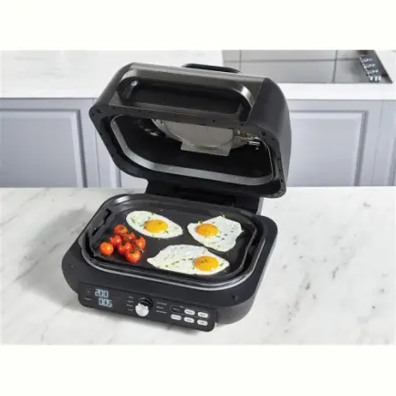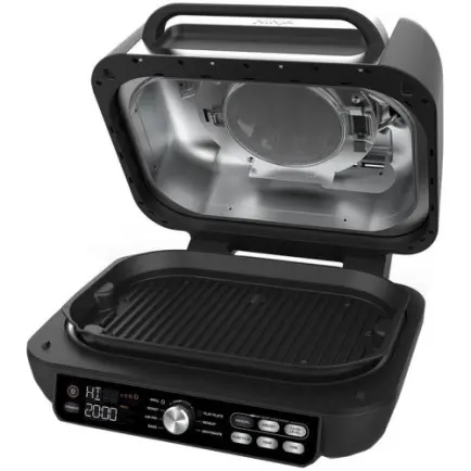 | Комплектация | цифровой кулинарный термощуп, 3.78 л корзина для фритюра с керамическим покрытием, глубокая емкость для гриля; плоская емкость для гриля, защита от брызг, двухсторонняя щетка для чистки |