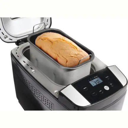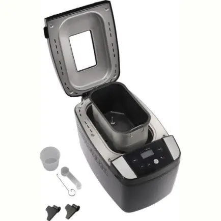 Насичений чорний колір цього кухонного апарату гармонійно доповнений сірими лініями, що вписується в приміщення з будь-яким інтер'єром. Корпус пристрою зроблений з міцного пластику, а сама форма для випікання з металу. Дуже зручна електронна панель управління хлібопічки Gorenje BM1210BK дасть змогу швидко і просто керувати всіма процесами приготування. Дисплей допоможе контролювати їх, а за створенням кулінарного шедевра можна спостерігати через оглядове вікно.