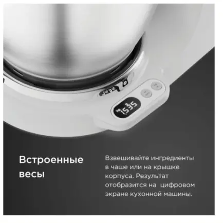 Кухонна машина Kenwood KVC 65.001 WH Titanium Chef Baker має потужність в 1200 Вт, яких цілком досить для використання 3-х приводів, куди кріпляться насадки. Також, не варто забувати і про різні режими, які є в приладі, їх тут 8+ імпульсивний. У нижній частині корпусу розміщені електронні ваги з дисплеєм, завдяки яким ви можете орієнтуватися за кількістю інгредієнтів в чаші. Говорячи про останній, чаша до даної кухонної машини йде об’ємом в 5 літрів. До неї в комплекті йде дуже зручна захисна кришка від бризок під час використання приладу.
