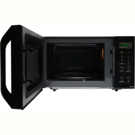Мікрохвильова піч оснащена поворотним столом діаметром 28.8 см, який забезпечує рівномірний розподіл тепла, а наявність п’яти рівнів потужності дозволяє гнучко налаштовувати процес приготування. Дверцята відкриваються за допомогою зручної ручки, а для безпеки передбачено функцію захисту від дітей.