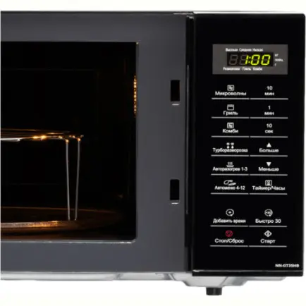 Додатково модель PANASONIC NN-GT35HBZPE обладнана дисплеєм, що відображає основні параметри роботи. Завдяки функціям автоматичного приготування та автоматичного розігріву, приготування страв стає ще простішим.