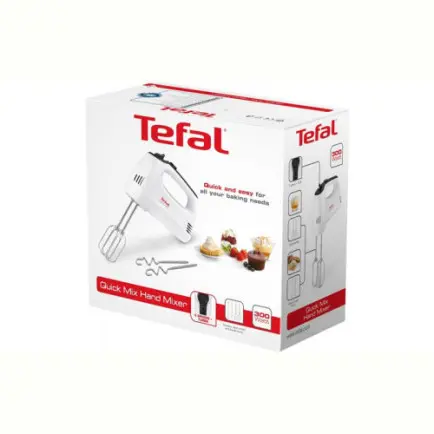 - Лаконічний дизайн. Управління приладом здійснюється рухом одного пальця. При цьому міксер Tefal HT310138 не вимагає підвищеної уваги: очищення робочих насадок, можна зробити як вручну, так і у посудомийці.