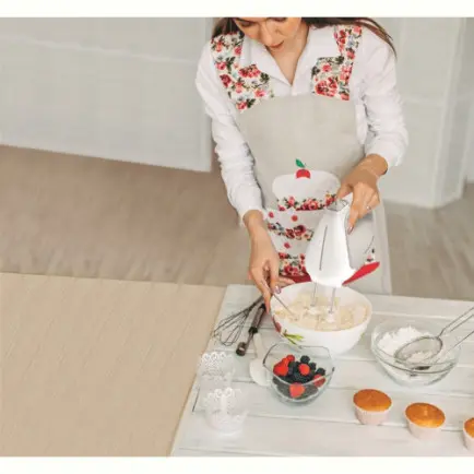 Користувачам точно сподобається ергономічна ручка, яка дуже зручно лежить у руці, та стабілізоване положення міксера, що допоможе уникнути бризок та підтримувати чистоту на кухні. І найголовніше, вінчики та гачки можна без проблем мити в посудомийній машині, щоби не марнувати на миття посуду більше сил та часу, ніж на приготування.