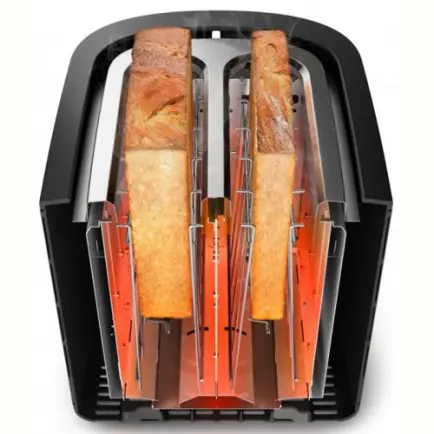 Механізм автоцентрування ідеально розташовує кожну скибочку посередині для рівномірного підсмажування, незалежно від товщини хліба.