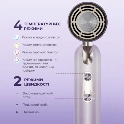 Режим догляду за волоссям – забезпечує оптимальний нагрівання 57 градусів за Цельсієм для живлення та захисту волосся під час сушіння.
