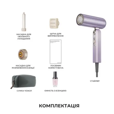 Насадка для нанесення есенції наносить поживну есенцію на волосся безпосередньо в повітряний потік, рівномірно розподіляючи активні інгредієнти від коренів до кінчиків, зволожуючи шкіру голови, згладжує кутикули та зменшує пухнастість, утримуючи вологу під час укладання. В результаті волосся стає більш блискучим, слухняним і помітно здоровішим, при цьому знижується потреба в додаткових засобах після укладання.