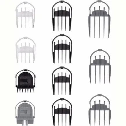 3 направляючі насадки для голови, 2 для тіла та 5 для бороди.
