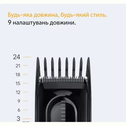 Налаштовуйте довжину стрижки від 3 до 24 мм за допомогою спеціальної насадки-гребеня - 9 варіантів на вибір дозволяють експериментувати зі стилями і підбирати ідеальний образ. Розумна функція Memory Lock фіксує останнє використане значення, щоб швидко поверталися до улюбленої довжини без зайвих маніпуляцій.