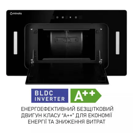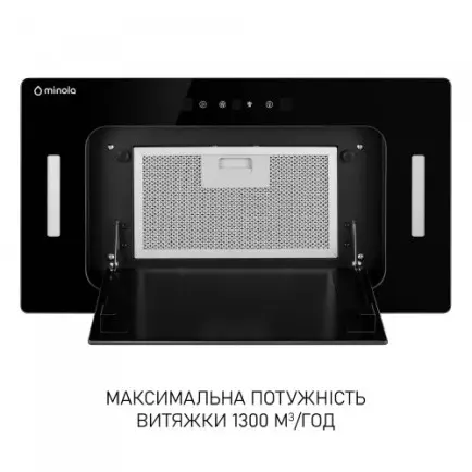 Повновбудована кухонна витяжка Minola BGH 5977 BL Silent обладнана одним мотором потужністю 210 Вт. Максимальна продуктивність пристрою в режимі відведення повітря становить 1300 м3/годину. Це дозволяє ефективно видаляти випари, небажані запахи та кіптяву, які утворюються в процесі приготування їжі.