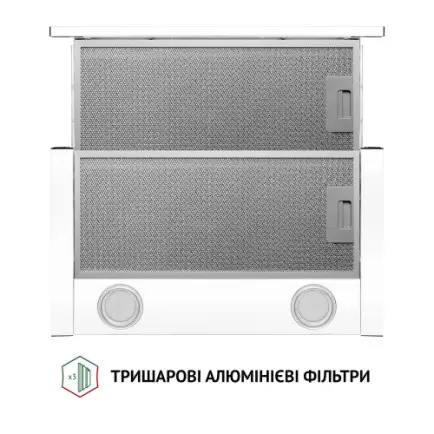 Освещение вытяжки состоит из двух LED-ламп мощностью по 1.5 Вт, которые расположены на задней части вытяжки и способствуют лучшему освещению рабочей поверхности. Подсветка является комфортной для глаз и работает как дополнительный источник освещения на кухне. Рабочий ресурс светодиодов в разы выше, чем у обычных ламп, а потребление энергии минимально. Кроме того, светодиоды достаточно выносливы во время активной эксплуатации.