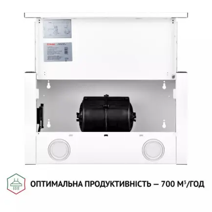 Уровень шума вытяжки не превышает 61 дБ и комфортен для человека и домашних животных. Вытяжка может работать в режиме отвода воздуха, при котором загрязненный воздух выводится наружу через гибкий трубопровод или в режиме рециркуляции с использованием угольного фильтра (не входит в комплектацию).