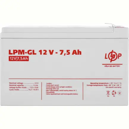 Характеристики Акумуляторна батарея LogicPower 12V 7.5AH (LPM-GL 12 - 7.5 AH)