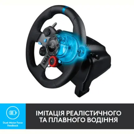 Руль правдиво відтворює відчуття від процесу водіння. Механізм зворотного зв'язку через зусилля зі здвоєним електродвигуном точно передає ефект бічного відведення коліс і особливості поверхні, якою здійснюється рух. Вал кермового керування встановлений на сталевих кулькопідшипниках. Завдяки цьому він вирізняється високою міцністю, а його вага відповідає параметрам рулів справжніх машин. Педалі та важелі з неіржавкої сталі дають змогу точно відтворити зусилля, необхідні для керування автомобілем. Кермове колесо зі шкіряним покриттям ручного виготовлення дає гравцеві змогу відчути зручність водіння найрозкішніших машин. Плавність і безшумність роботи забезпечуються завдяки застосуванню косотрибової передачі.