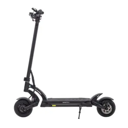 Електросамокат Mantis 8 має легку раму з авіаційного алюмінієвого сплаву 6061/6082 і важить лише 25 кг. Каркас викуваний з цільного шматка, що робить його не тільки легким, але й дуже міцним. Алюміній - чудовий вибір для приміського самоката, оскільки він набагато жорсткіший за сталь і забезпечує плавність ходу. Крім того, рама Mantis 8 складана, що спрощує його зберігання і транспортування.