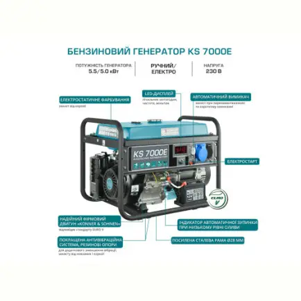 Характеристики Генератор бензиновий Konner&Sohnen KS 7000E