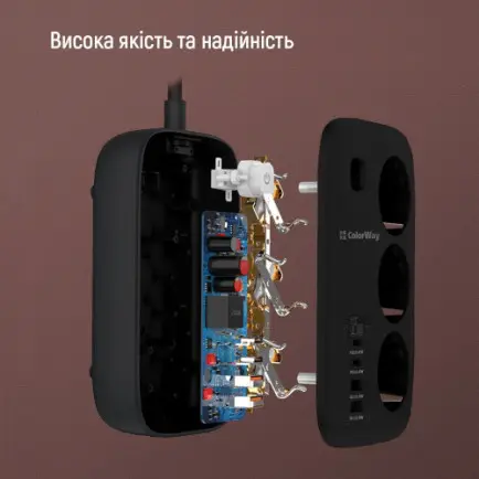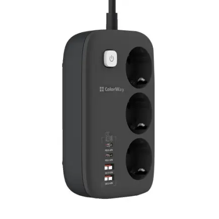 Фільтр живлення ColorWay CW-CHE34PDB GaN3 Pro PD 65W (2USB-A + 2 TYPE-C)