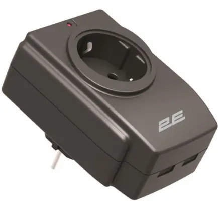 Мережевий адаптер 2E 1xТип F, 16A, 2xUSB-A, чорний (2E-AD120U)