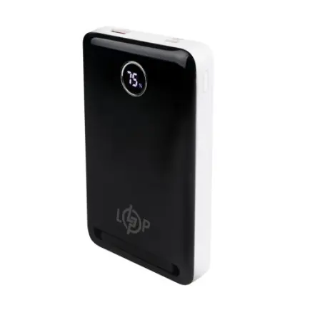 Універсальна мобільна батарея з дисплеєм контролю заряду. Вбудований екран дозволяє відстежувати рівень заряду акумулятора, що забезпечує контроль та дозволяє планувати заряджання. Зелений індикатор на дисплеї сигналізує про активацію бездротової зарядки.