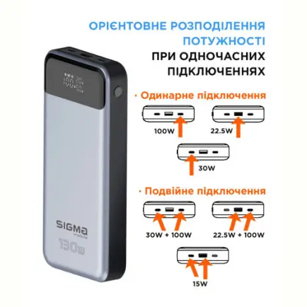 | Вихід USB (1) | 5 В/3 A, 9 В/3 A, 12 В/3 A, 15 В/3 A, 20 В/5 A |