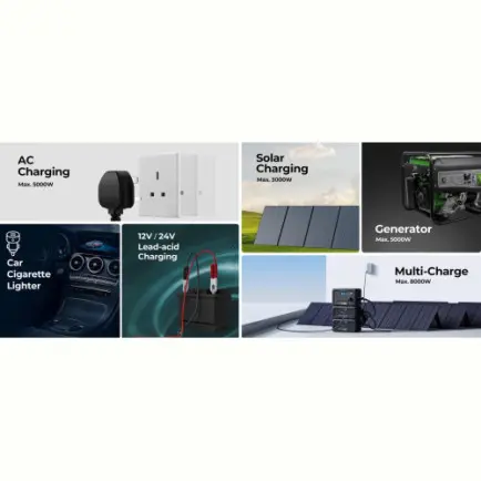 Вбудований інвертор постійного струму забезпечує безперервну синусоїдальну вихідну потужність 5000 Вт та підтримує сплески до 10 кВт за короткий час у піковому режимі. Ідеально підходить для всіх випадків – від кемпінгу до барбекю на задньому подвір'ї.