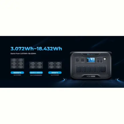 Завдяки своїй модульній конструкції AC500 може бути оснащена 6 батареями B300S або 4 батареями B300 (або комбінацією B300 та B300S) загальною ємністю 18432 Вт та 12 288 Вт відповідно, забезпечуючи кілька днів потреби в електроенергії при відключенні від електромережі!