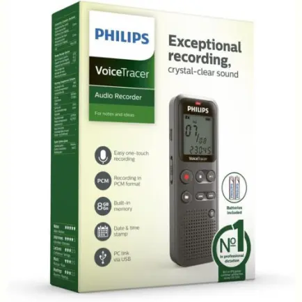 Батареи нового диктофона хватает до 44 часов для сверхпродолжительных сеансов записи.