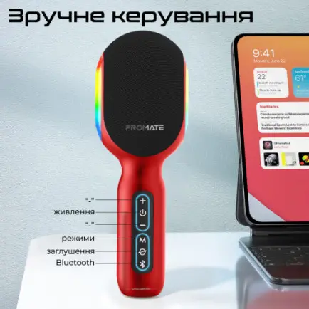 Мікрофон для караоке Promate VocalMic Bluetooth LED Red