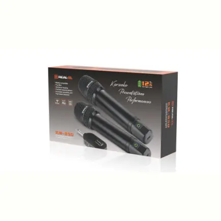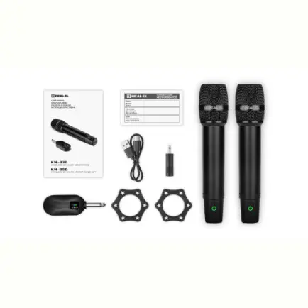Пойте, выступайте, зажигайте – без проводов и без ограничений. REAL-EL KM-850 — набор из двух беспроводных динамических микрофонов с одним общим ресивером, созданный для караоке, вечеринок, выступлений и домашних концертов.
