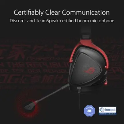 Знімний спрямований мікрофон ROG Delta S Core забезпечує кришталево чисте голосове спілкування у грі. Він сертифікований провідними розробниками сервісів голосового спілкування TeamSpeak та Discord.