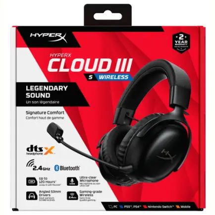 Гарнітура Cloud III S Wireless – це еволюція бездротової гарнітури Cloud III, яка зберегла всі улюблені функції попередньої моделі. Окрім бездротового підключення 2,4 ГГц, користувачі можуть підключатися до більшої кількості пристроїв через Bluetooth або режим миттєвої синхронізації, сумісний з деякими ноутбуками OMEN. Вона також може похвалитися збільшеним часом автономної роботи та кількома варіантами налаштування. Завдяки фірмовому комфорту HyperX ця гарнітура забезпечує розкішний комфорт для ігор протягом усього дня або марафонських трансляцій.