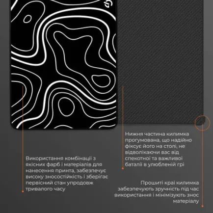 Прорезинена основа забезпечує надійну фіксацію на будь-якій поверхні. Килимок не ковзає, не зсувається навіть під час найбільш напружених моментів гри, даруючи користувачу повний контроль над кожним рухом. Це особливо важливо для кіберспортсменів і тих, хто грає на високих рівнях складності, де важлива кожна мілісекунда.