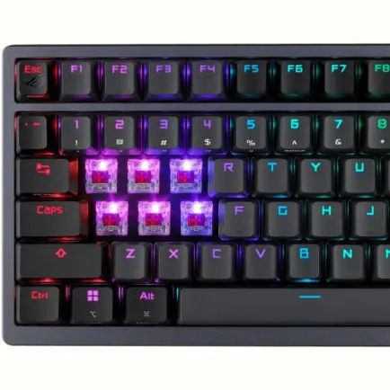 Комфортне введення тексту: попередньо змащений стабілізатор клавіш створює менше тертя для більш плавного та стабільного руху клавіш; довговічні двокомпонентні ковпачки ROG PBT.