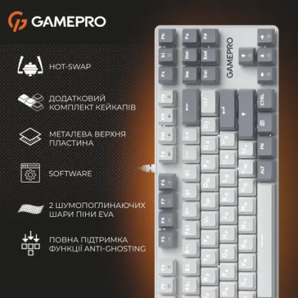 Характеристики Клавіатура GamePro Genesis Metallic MK110W Outemu Red Swithes USB White