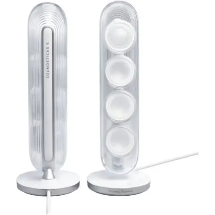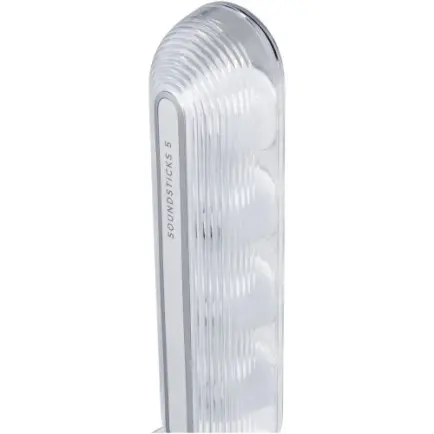 SoundSticks 5 – це переосмислення культового дизайну: повністю прозорий купол у стильних відтінках із преміальними металевими акцентами. Піднятий сабвуфер виконує не лише аудіофункцію, а й виступає вишуканим візуальним елементом. Продуманий інтерфейс підключення та інтуїтивно зрозуміле сенсорне керування, розташоване в нижній частині правого динаміка, забезпечують зручність використання.
