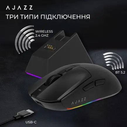 Бездротове підключення 2.4G – надійне з’єднання без затримок та провалів сигналу, ідеальне для ігор та роботи.