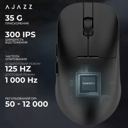 Сенсор PAW3311 обеспечивает высокую точность с разрешением до 12 000 DPI. Драйвер программного обеспечения может настраивать минимум 50 DPI, максимум 12000 DPI, что позволяет адаптировать чувствительность к любым игровым потребностям. Быстрота отклика при проводном и беспроводном подключении 1К гарантирует мгновенное реагирование на любые движения, обеспечивая безупречную точность в игре.