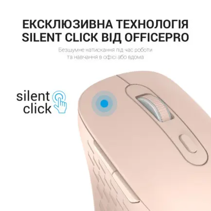 Миша обладнана безшумними лівою та правою кнопками, що робить робоче середовище більш комфортним та сприяє підвищенню продуктивності.