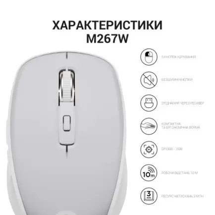 Характеристики Мышь беспроводная OfficePro M267G Gray