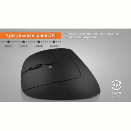 Регульована чутливість 800 / 1200 / 1600 / 2400 dpi з індикацією поточного режиму DPI дозволяє точно налаштувати швидкість курсора під будь-яке завдання.