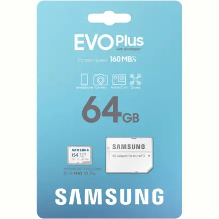 Характеристики Карта пам`яті MicroSDXC 64GB UHS-I/U3 Class 10 Samsung Evo Plus R160MB/s + SD-адаптер (MB-MC64SA/EU)